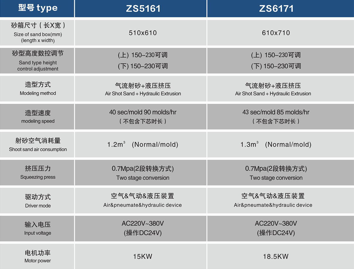 射砂無(wú)死角、上下射砂,多噴嘴任意調(diào)節(jié)、射砂均勻、操作簡(jiǎn)單,效率更高、緊實(shí)度更高、可做大深度產(chǎn)品鑄件、可變頻,速度可調(diào)